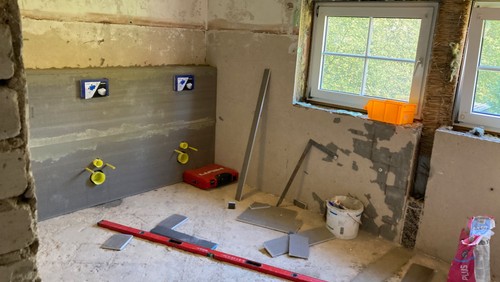 Tatsache ist, dass wir aus finanziellen Gründen von Jahr zu Jahr den Wünschen nach moderneren Sanitärräumen nicht nachkommen konnten und es immer Wichtigeres zu geben schien. Nun haben wir nicht im Lotto gewonnen, aber die Lage in der Keramikabteilung spitzte sich zu und wir fegen jetzt alles Geld zusammen, was zu finden ist, um dieses Projekt zu stemmen. Deshalb gibt es im Moment vor dem Gemeindehaus zwei elegante grüne Miettoiletten, die sich inzwischen schon so fest an das Gemeindehaus anlehnen, dass sie kaum auffallen. Die Umständlichkeit dieser Lösung tut uns leid, aber anders geht es gerade nicht. Wir hoffen, dass wir Ende November zur Normalität zurückkehren können. Dann ist es aber eine schönere, praktischere Normalität, die hoffentlich lange allen Ansprüchen gerecht wird. Bis dahin verkneift man sich vielleicht besser die zweite Tasse Kaffee…