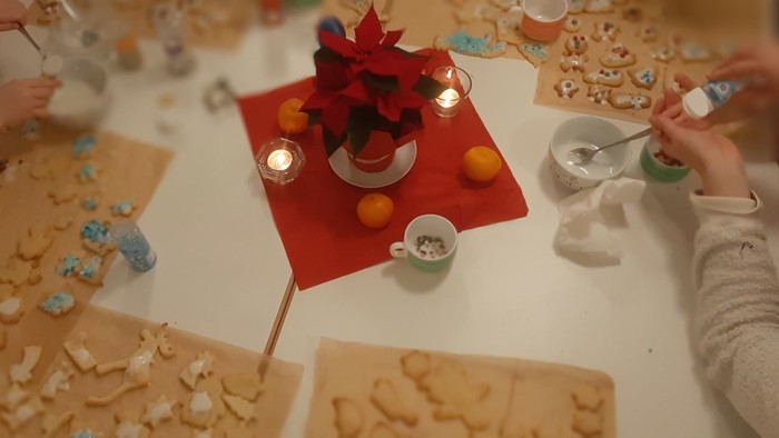 Am 9. Dezember luden wir erstmalig zum „Kekse backen für Familien“ ein. Viele fleißige Kinderhände kneteten und rührten Teig, stachen viele (viele viele!) Plätzchen aus und verzierten das leckere Gebäck anschließend mit großer Freude. Sie wurden unterstützt von fleißigen Helferinnen aus der Gemeinde. Eine kleine Tanz- und Singpause gestaltete Pastor Paul Timmermann mit Weihnachtsliedern. Zusammengefasst: Ein Nachmittag mit viel Mehl im ganzen Raum und überall, der mit schönen Erinnerungen an das Kinderlachen und die tollen Gespräche im Gedächtnis bleiben wird.